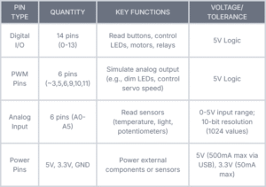 - Digital I/O Pins: 14 (6 PWM-capable)